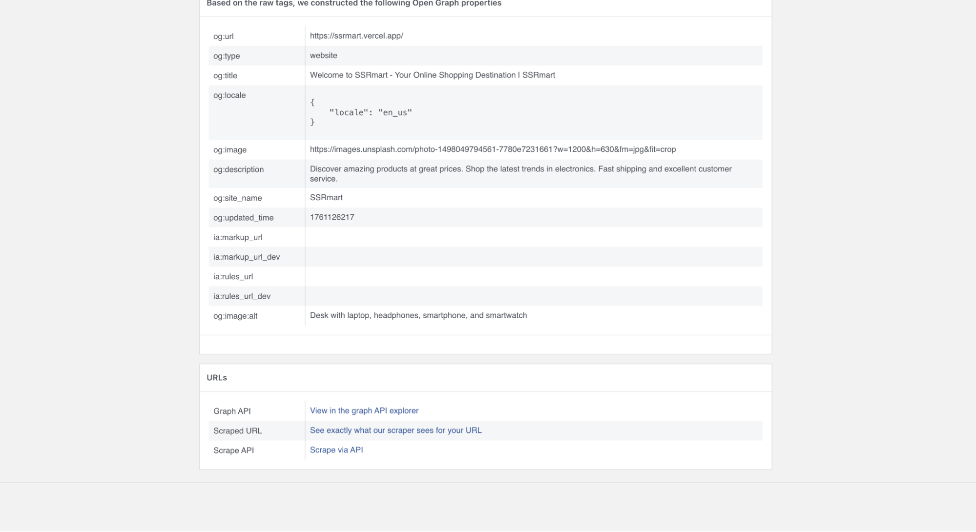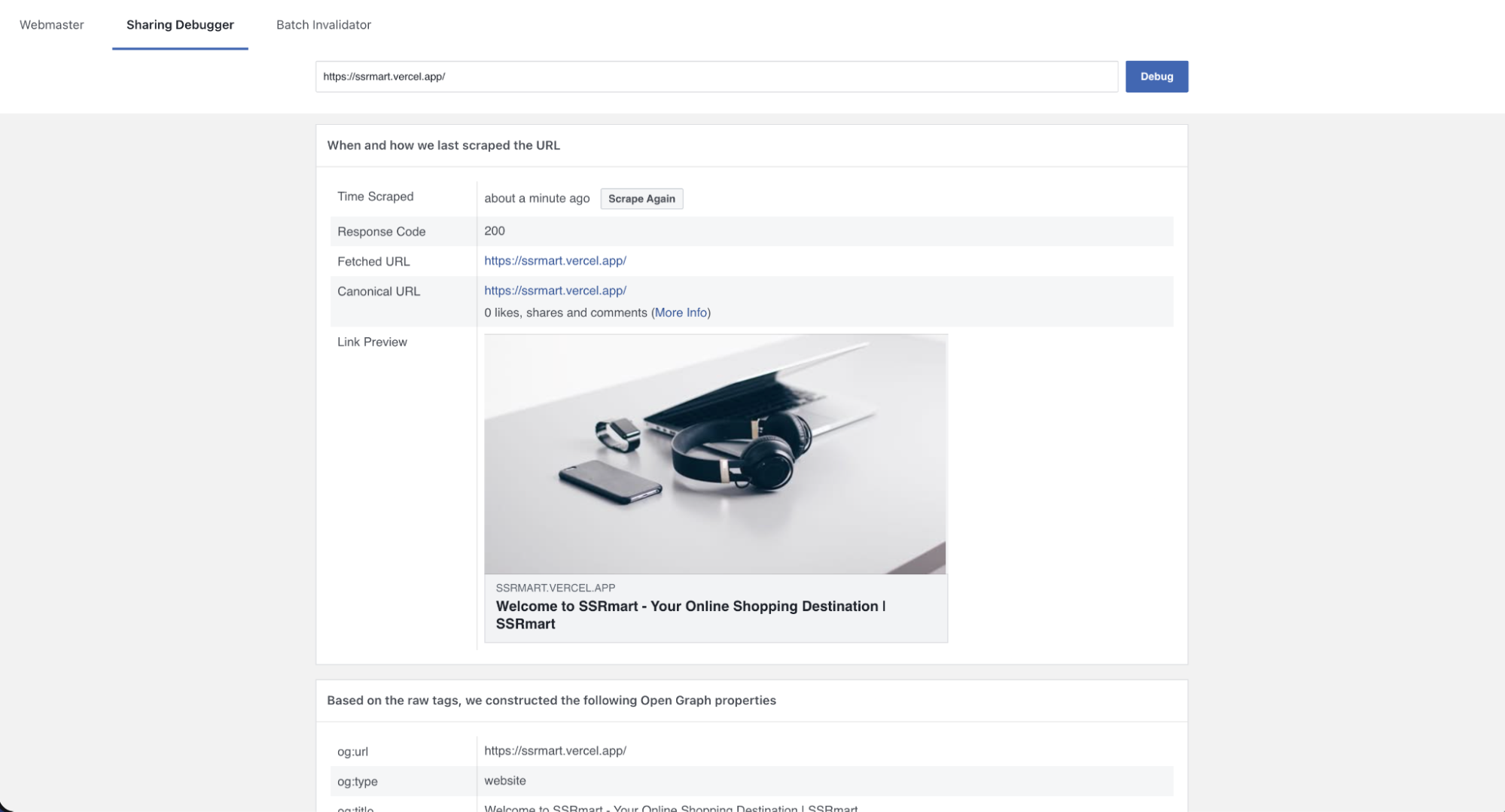 You may have seen older articles or AI-generated responses suggest using og:type with a value of product. However, as of 2025, product value is not a defined type in the official Open Graph documentation and, as far as I know, not recognized by major social platforms.